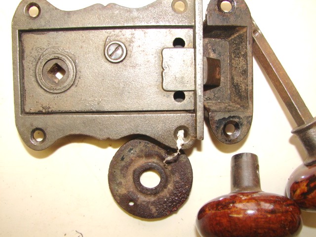 Description: Early American wrought iron Dutch Elbow Lock with exterior removable