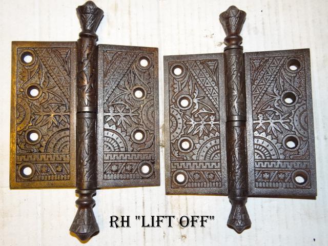 Available: 3 @ 4-1/2" X 4-1/2" (Marked "B55") Large Finial Double ring collar (LG 2 Clr) 1 @ 5" X 5" (Marked "B56?") Large Finial Double ring collar (LG 2 Clr) LIFT OFF 2 @ 4-1/2" X 4-1/2" Right Hand Lift Off Hinge (Marked "B50 R" Large Finial with collar as pictured Quantity: