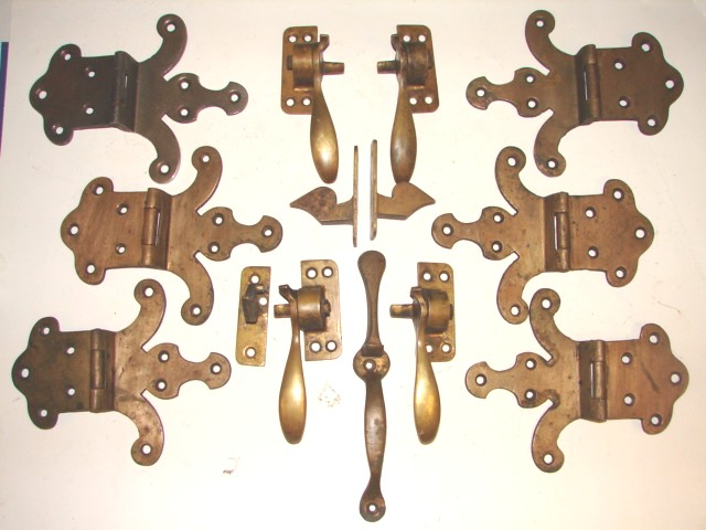Description: Cast Brass Ice Box Hinges & Latch Set For a 7 Door Ice Box