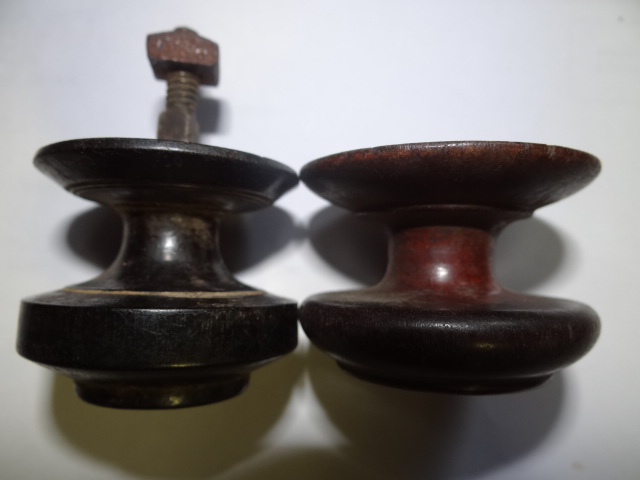 Knob Left is Tight Grained like Rosewood or Ebony but too Dark to see, Knob on Right is Rosewood