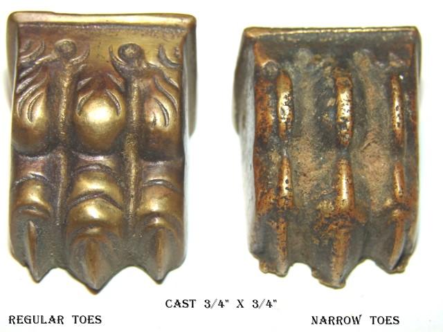 Back To Feet PLEASE BE PATIENT THERE'S A LOT OF PICTURES TO LOAD. Measurements are for the insides or the approximate size of the wood foot the cap goes on If you have any questions, please contact us at 616-374-7750 or by email at antiquehardware@robinsonsantiques.com. |